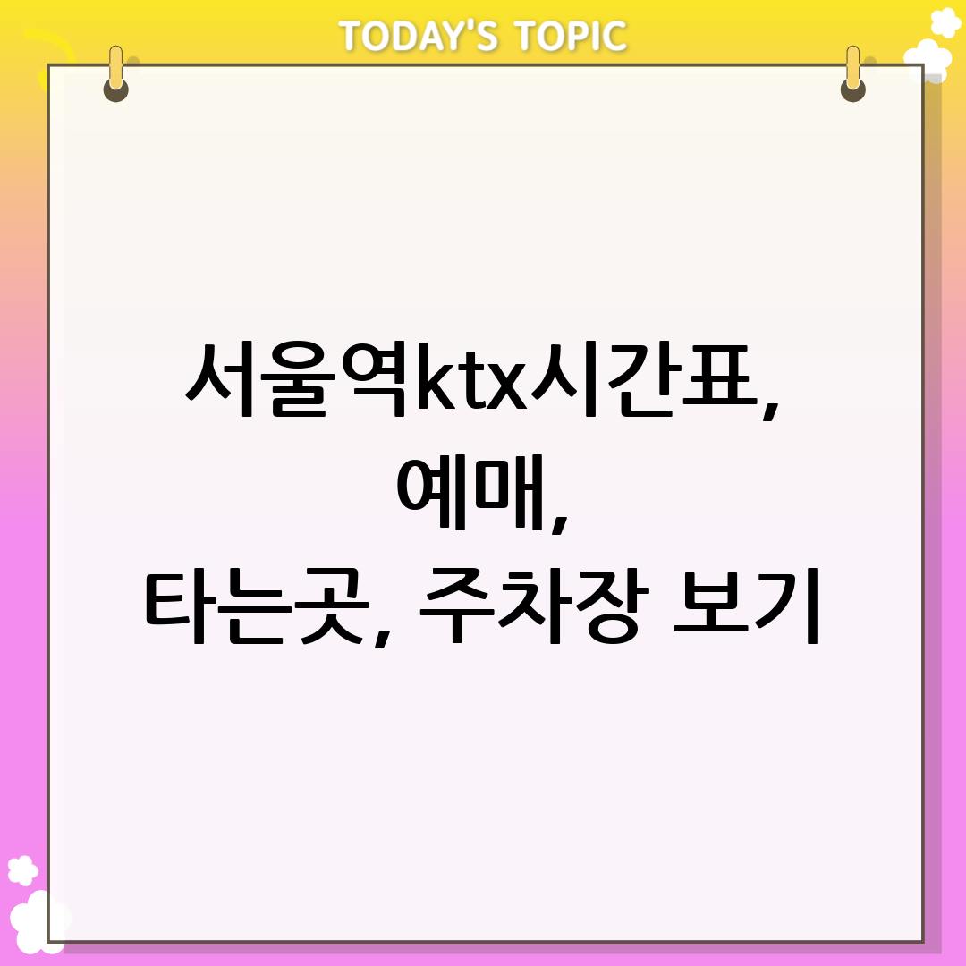 서울역 KTX 이용은 처음에는 복잡하게 느껴질 수 있지만, 시간표 확인, 예매 방법, 타는 곳, 주차장 정보 등을 미리 알아두면 훨씬 편리하게 이용할 수 있습니다. 이 글에서 제공한 정보가 여러분의 서울역 KTX 이용에 도움이 되기를 바랍니다. 안전하고 즐거운 여행 되세요!