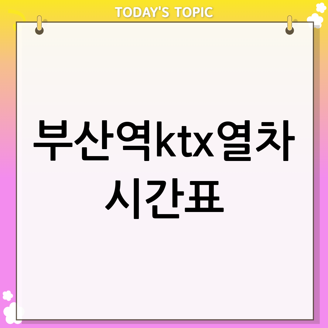 KTX를 이용해 부산을 방문하거나 부산에서 출발하는 분들이 가장 궁금해하는 건 바로 KTX 시간표겠죠? 실시간으로 변동될 수 있으니, 항상 최신 정보를 확인하는 것이 중요합니다.