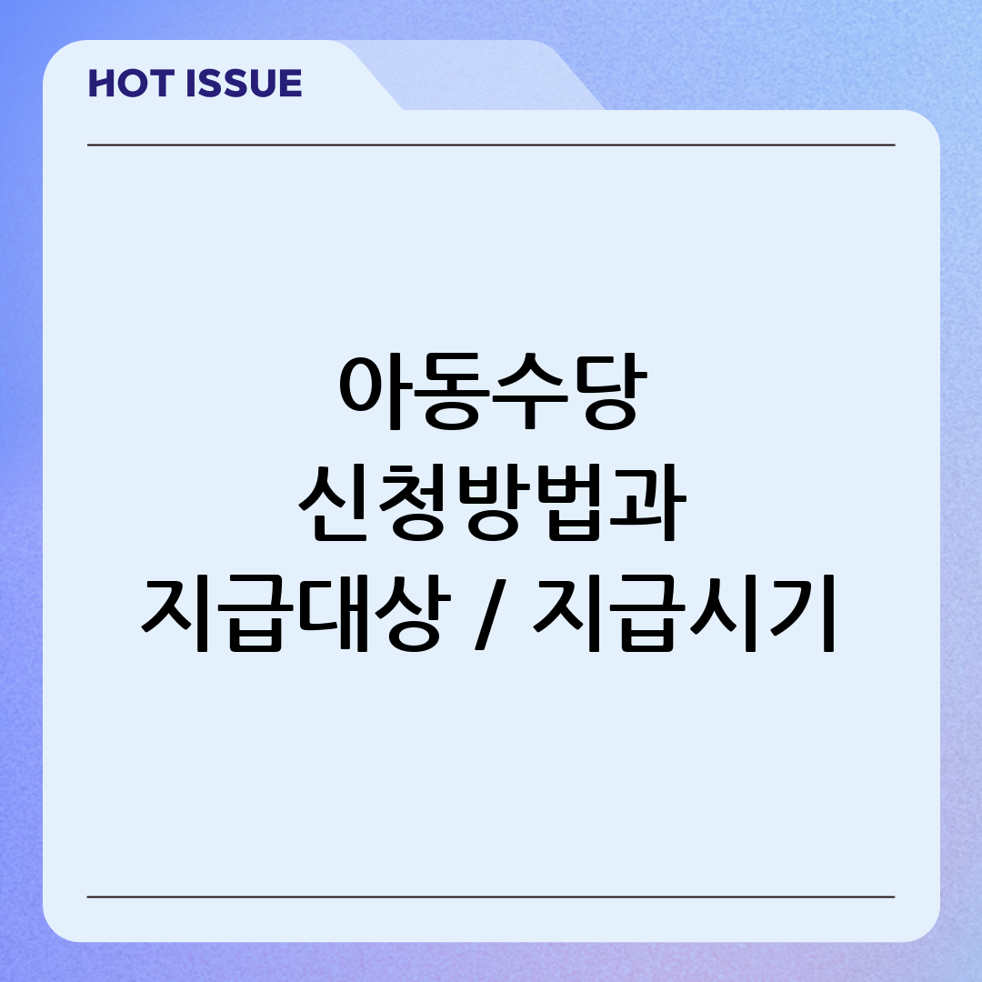 아동수당, 우리 아이들을 위한 소중한 지원금이죠. 하지만 복잡한 신청 절차와 헷갈리는 지급 조건 때문에 어려움을 겪는 부모님들이 많습니다. 그래서 오늘은 아동수당에 대한 모든 것을 쉽고 명확하게 정리해 드리겠습니다. 신청방법부터 지급대상, 지급시기까지, 이 글 하나로 모든 궁금증을 해결하세요!