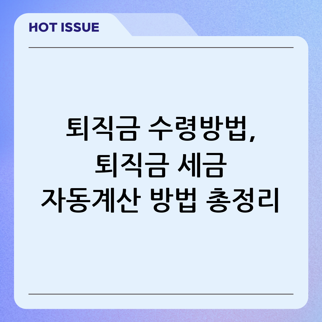 퇴직은 인생의 중요한 전환점입니다. 오랫동안 몸담았던 직장을 떠나 새로운 시작을 준비하는 시기이기도 합니다. 이때, 퇴직금은 단순한 돈을 넘어, 그동안의 노고에 대한 보상이자 미래를 위한 소중한 자산이 됩니다. 하지만 퇴직금은 수령 방법과 세금 문제 등 복잡하게 느껴질 수 있는 부분들이 많습니다. 그래서 오늘은 퇴직금을 현명하게 관리하고 최대한 활용할 수 있도록 퇴직금 수령방법과 퇴직금 세금 자동계산 방법에 대해 자세히 알아보겠습니다.
