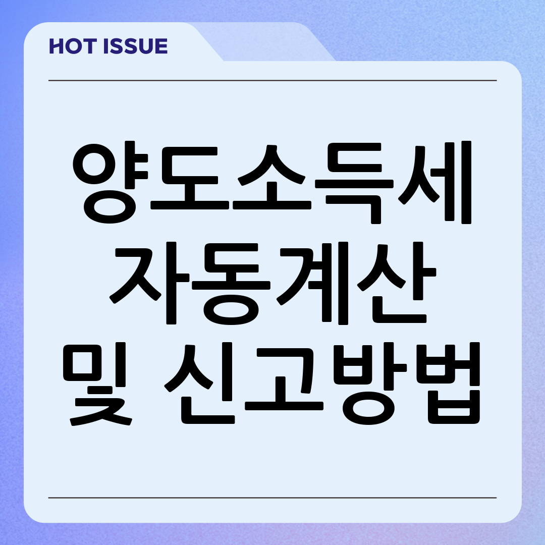 양도소득세, 부동산이나 주식 등을 양도했을 때 발생하는 세금이라 많은 분들이 어렵게 느끼실 텐데요. 복잡한 계산 과정과 신고 절차 때문에 세무사를 찾아야 할지 고민하는 분들도 많으실 겁니다. 하지만 이제 걱정 마세요! 양도소득세 자동계산 방법을 통해 쉽고 간편하게 세금을 계산하고 신고할 수 있습니다. 이 글에서는 양도소득세 자동계산 방법부터 신고 절차, 절세 팁까지 모든 것을 자세하게 알려드리겠습니다.