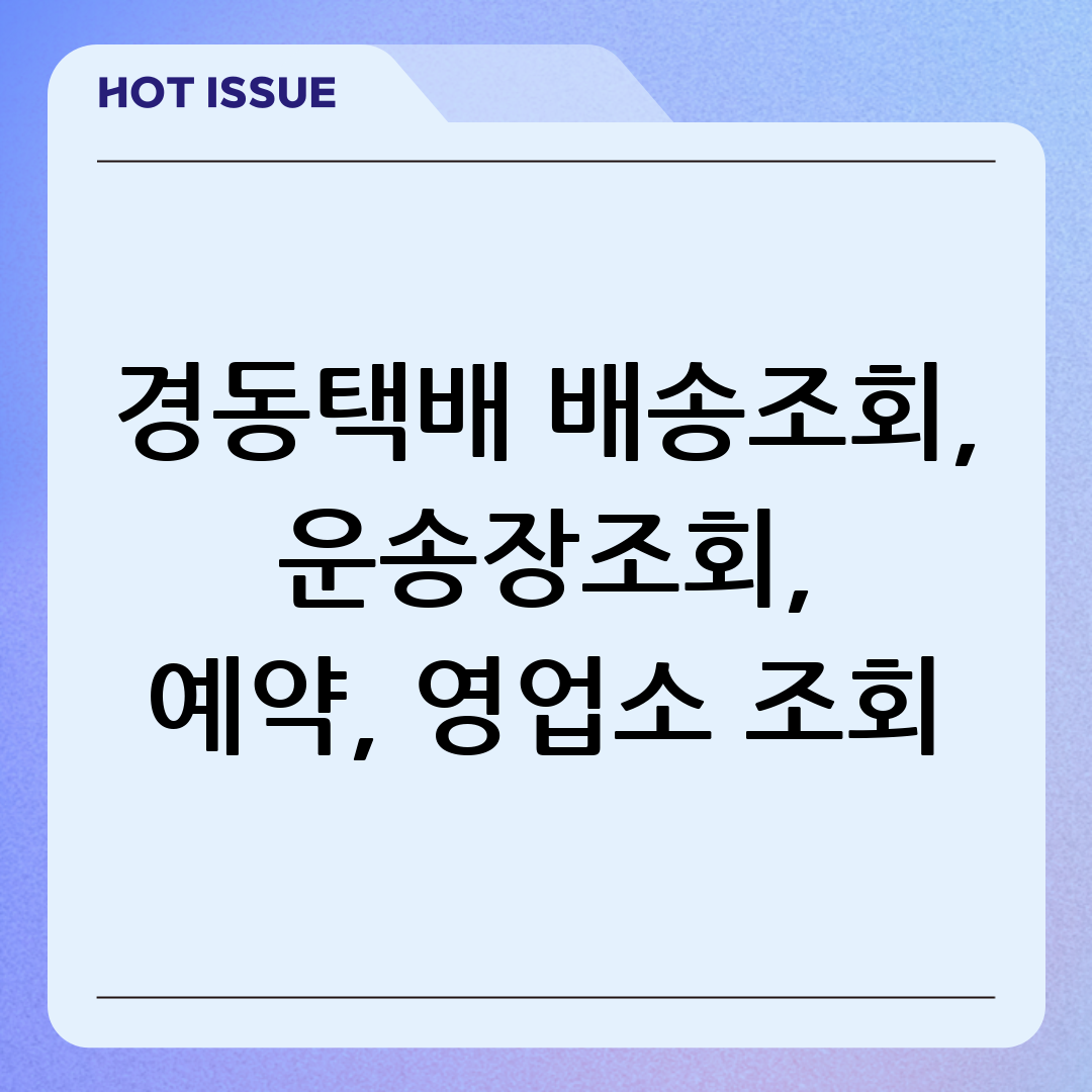 경동택배 배송조회 완벽 가이드: 운송장조회부터 예약, 영업소 조회까지 한번에!