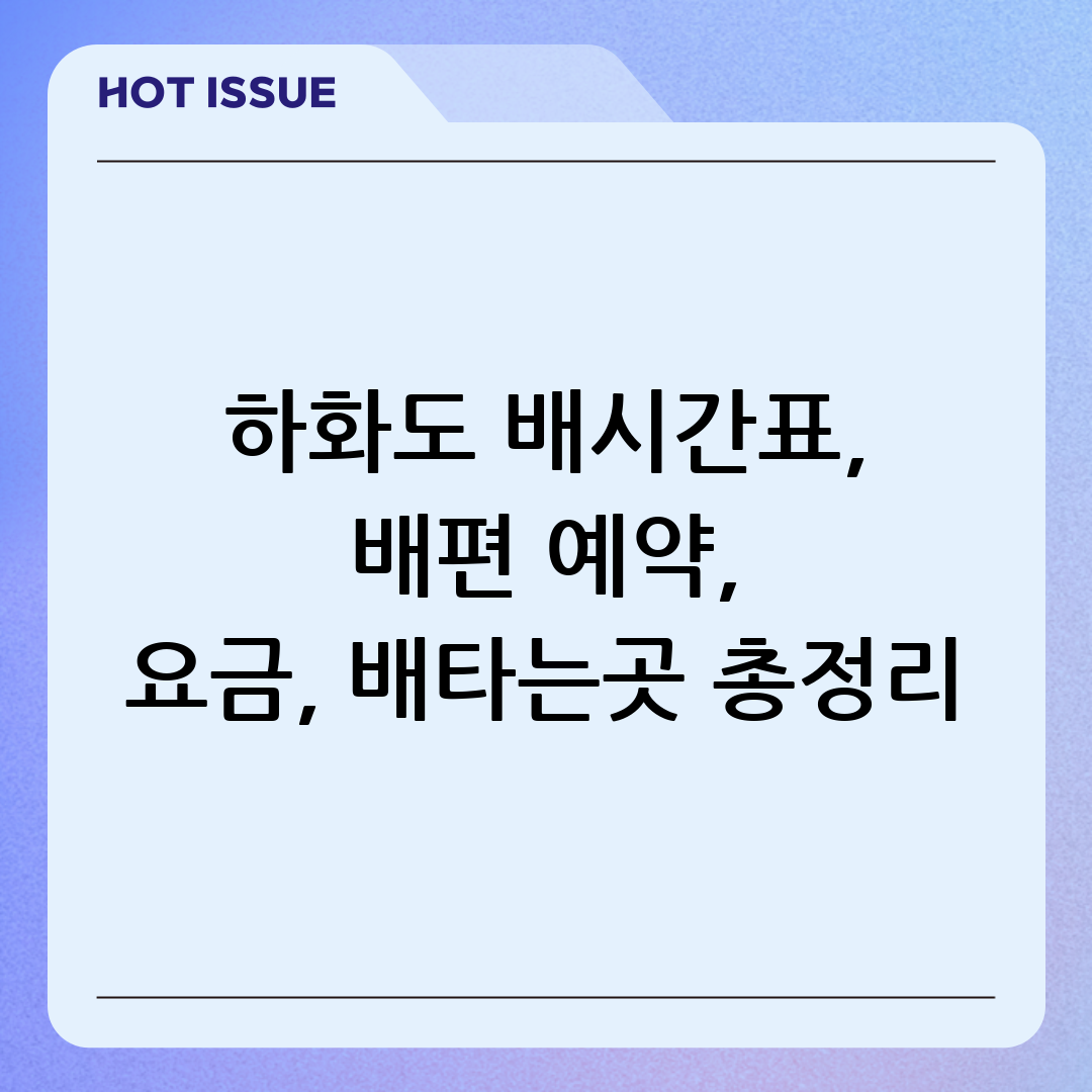 하화도 배편 완벽 가이드: 시간표, 예약, 요금, 배타는곳