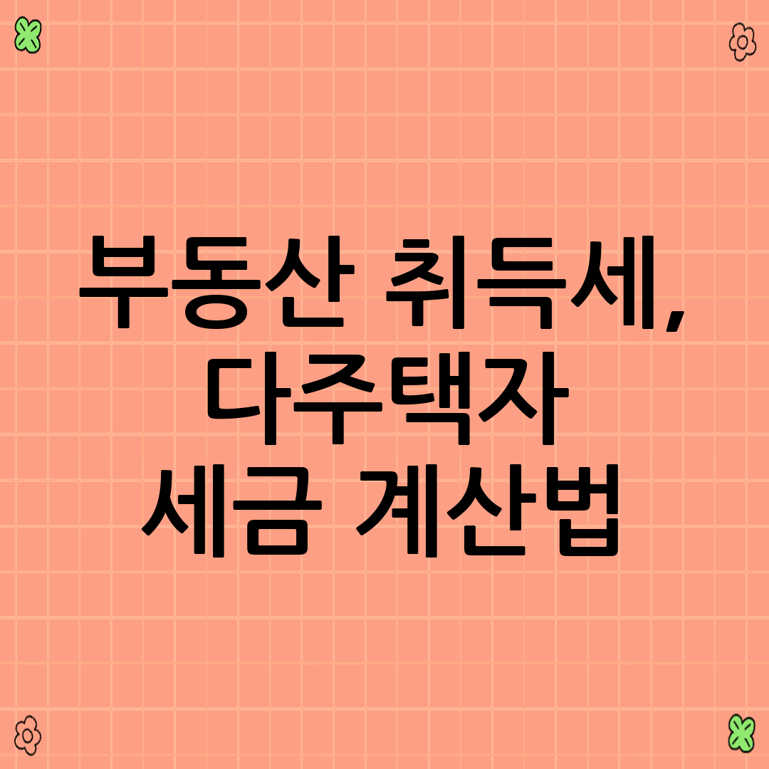 부동산을 취득할 때 반드시 고려해야 하는 세금, 바로 취득세입니다. 특히 다주택자에게는 취득세율이 복잡하게 적용될 수 있어 정확한 계산과 절세 전략이 중요합니다. 이 글에서는 2025년 최신 정보를 바탕으로 부동산 취득세, 특히 다주택자 세금 계산법과 절세 방안을 상세히 안내합니다.