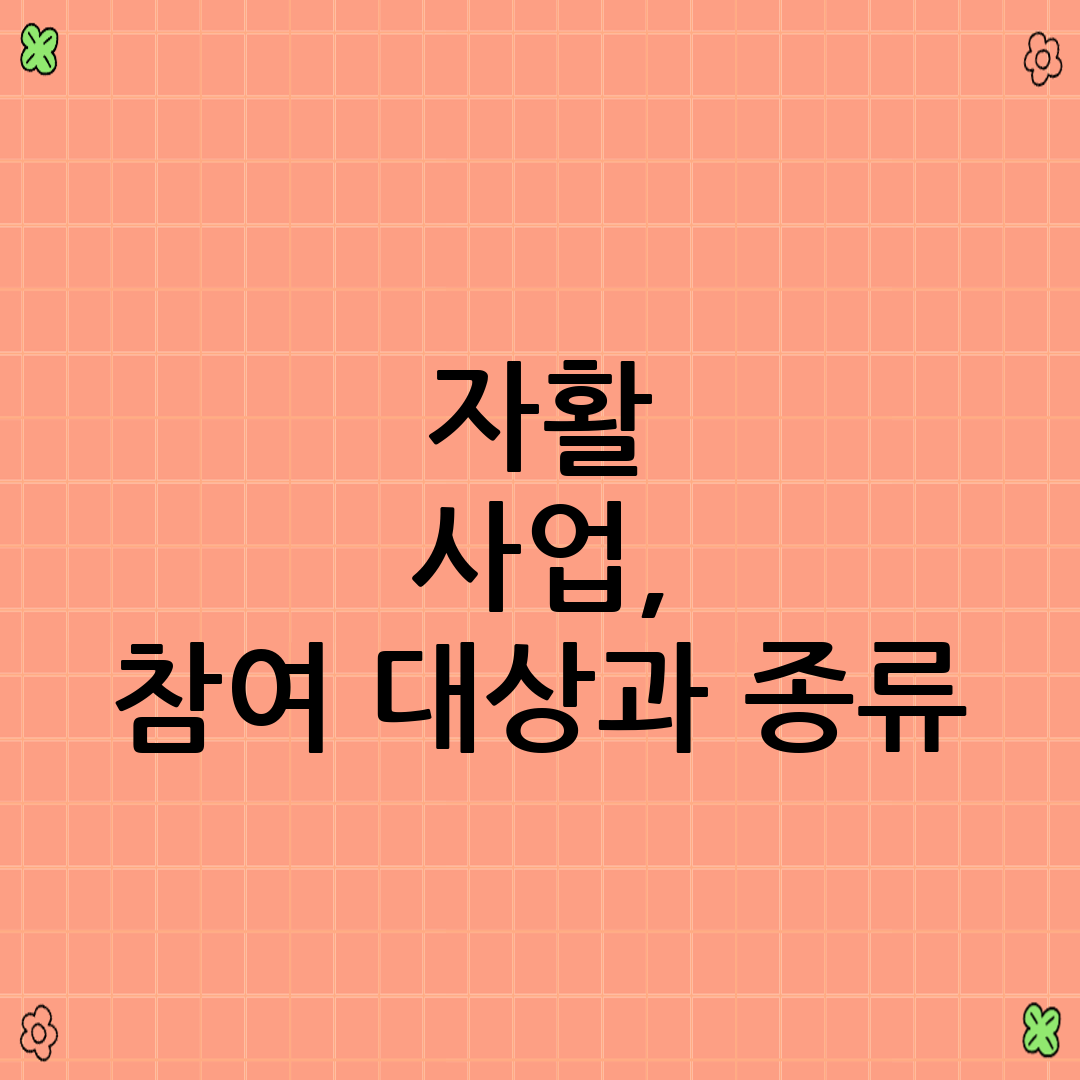 자활 사업은 크게 수급자와 차상위계층을 대상으로 합니다. 구체적인 참여 조건은 다음과 같습니다.