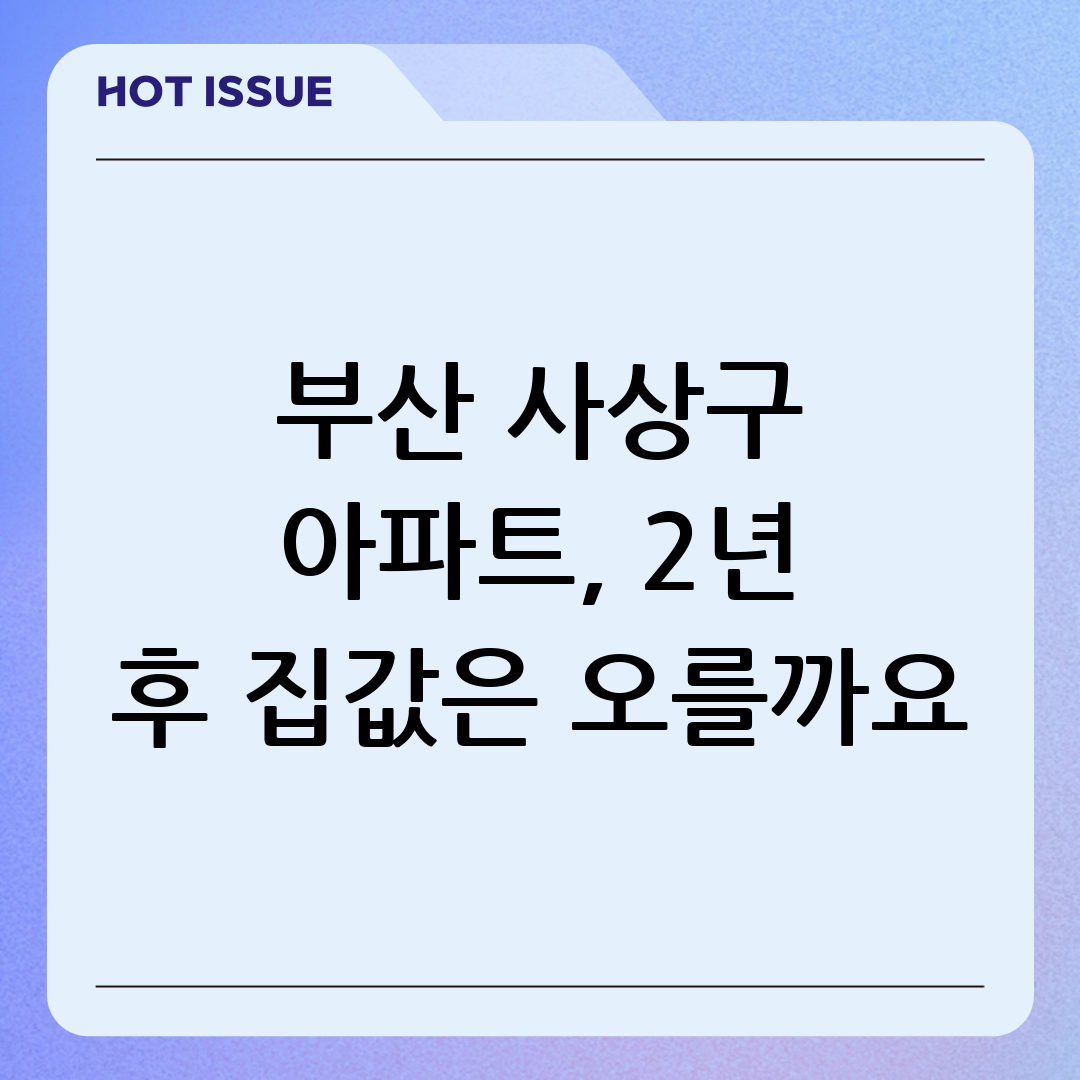 부산 사상구 아파트, 2년 후 당신의 자산은? 전문가 예측 시나리오 총정리