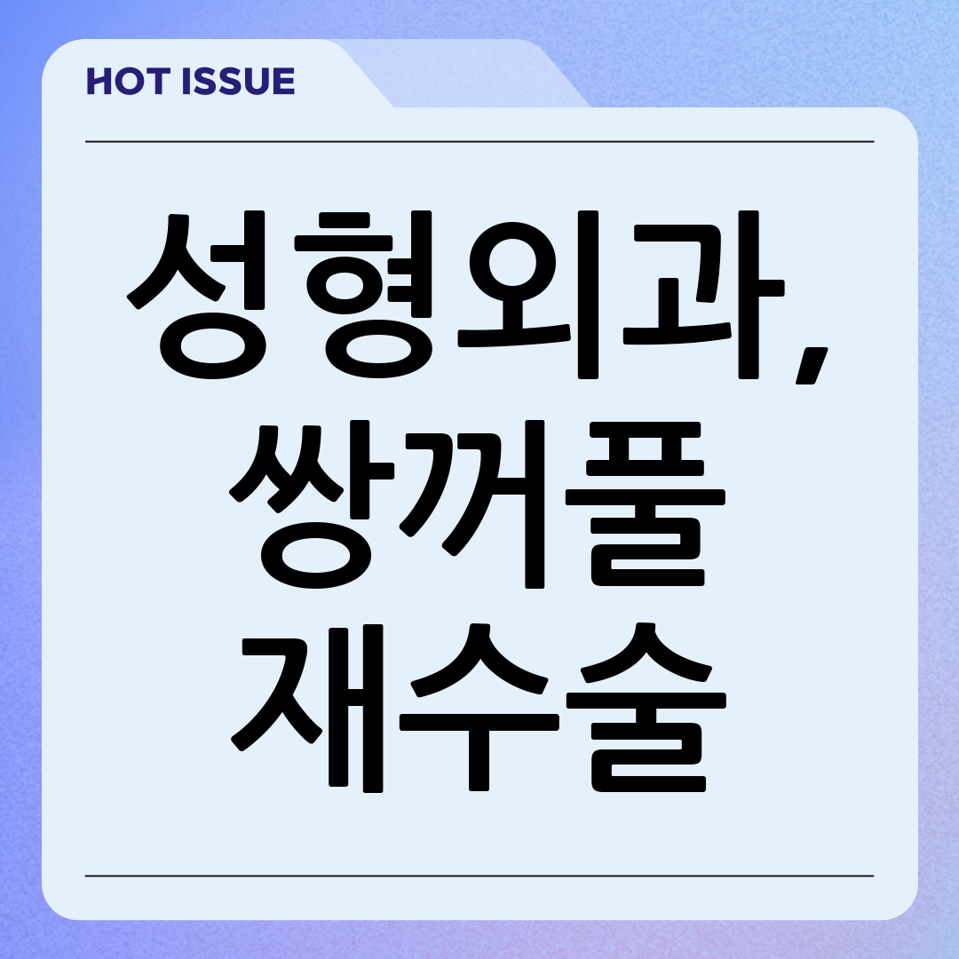 이 글에서는 쌍꺼풀 재수술을 고려하는 분들을 위해 재수술이 필요한 다양한 원인, 적절한 시기, 수술 방법, 그리고 최신 트렌드까지 꼼꼼하게 다룰 것입니다. 꼼꼼한 정보 습득을 통해 성공적인 재수술을 위한 첫걸음을 내딛어 보세요.