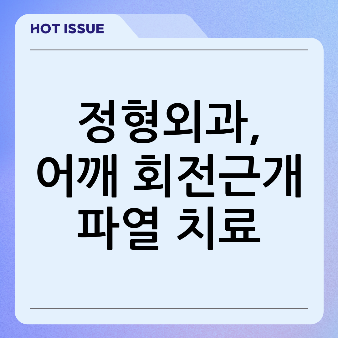 - 관절경 수술: 관절경을 이용하여 파열된 힘줄을 봉합하는 수술입니다. 최소 침습 수술로 절개 부위가 작고 회복 기간이 짧다는 장점이 있습니다.